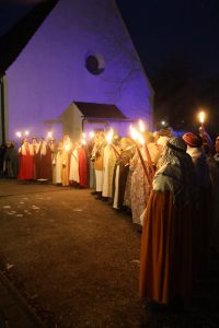Die Sternsänger kommen auf ihrem Weg durch Töging auch an der Auferstehungskirche vorbei und singen ihr traditionelles Lied „Stern von Bethlehem“. Bei heuer eiskalten Temperaturen bedarf es einer „inneren Aufwärmung“!